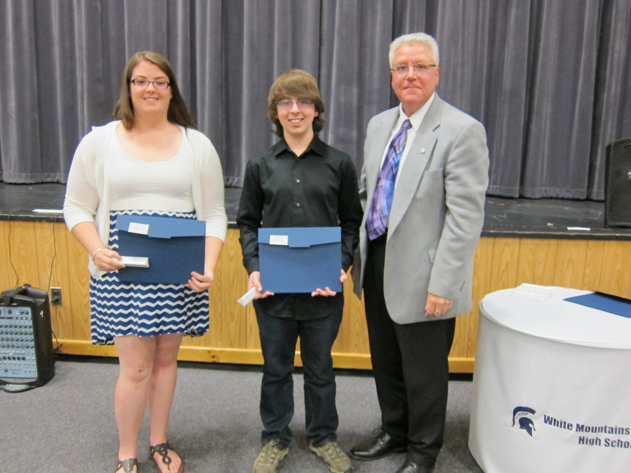 Front Row: Emily French, Valedictorian, Woodsville High School, Leanza Hunt, Salutatorian Profile High School, Morgan Austin, Valedictorian Profile High School, Jessica Kennett, Valedictorian Colebrook Academy, Austin Steward, Salutatorian Colebrook Academy, Abigail Bronson, Salutatorian, Lisbon Regional High School, Erin Proctor, Valedictorian, Lisbon Regional High School